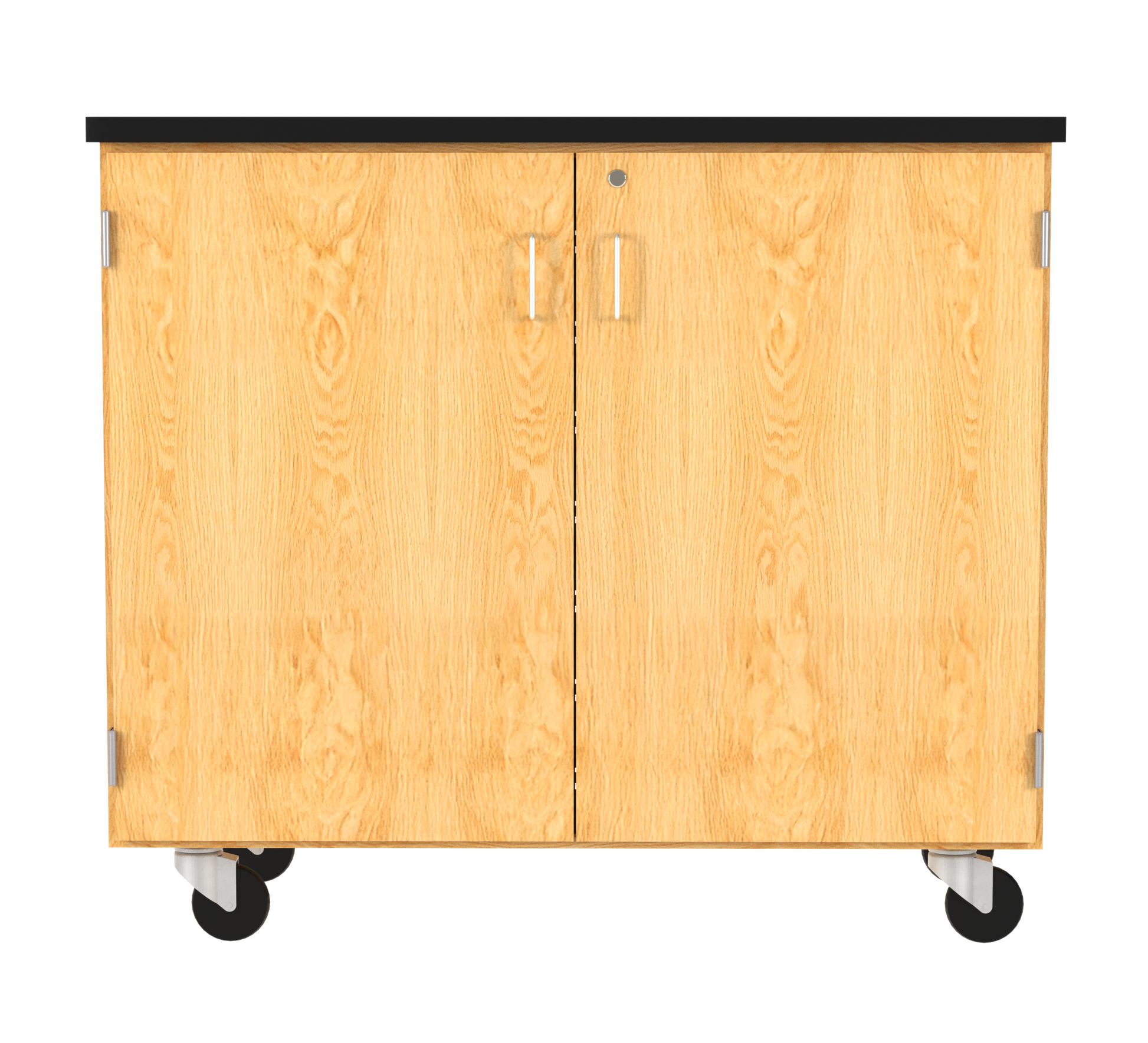 Two lockable doors swing 270 degrees and the cabinet fits 21 tote trays (included)