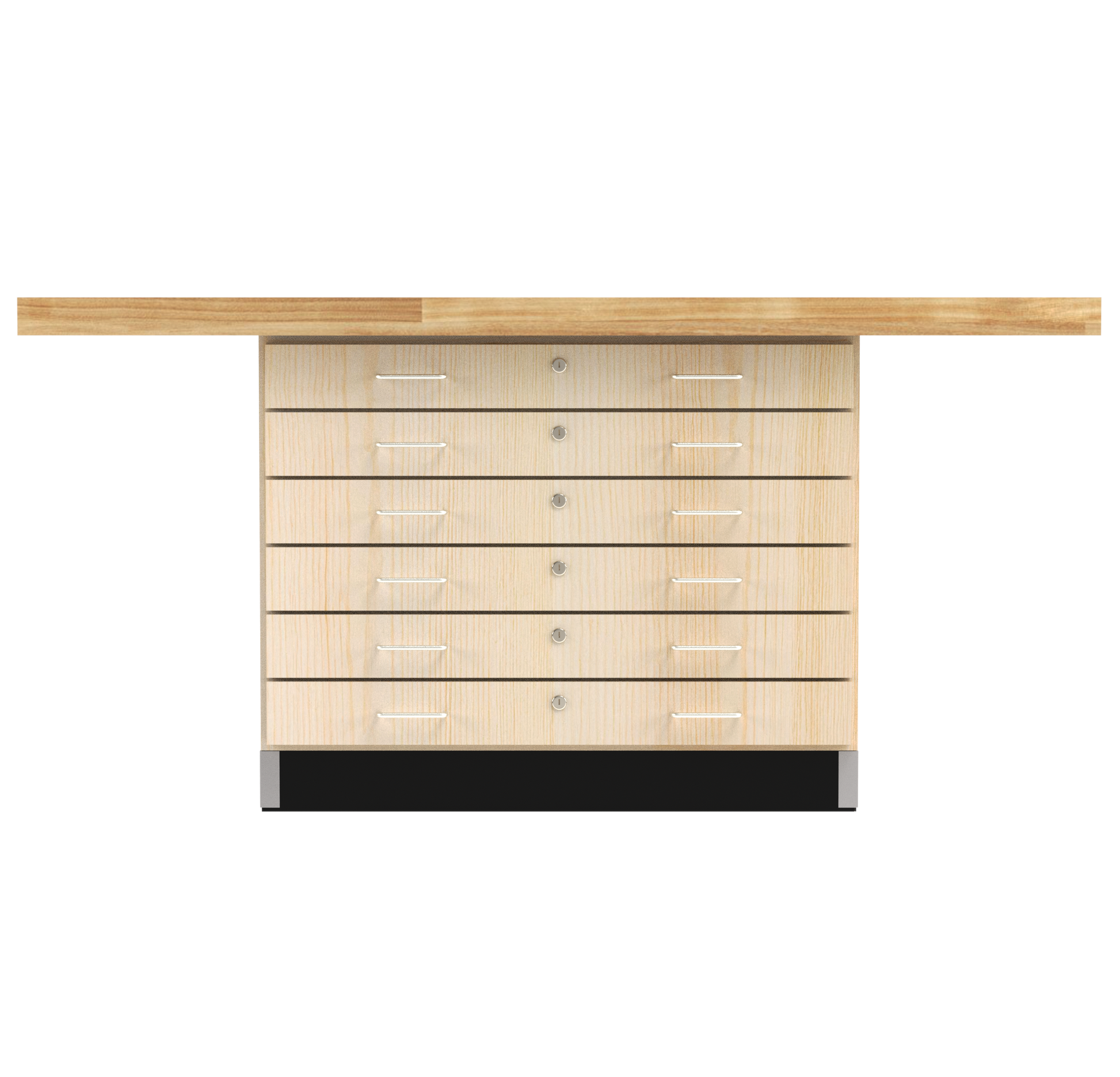 The Forum Industrial Arts Four-Station Wood Workbench is made for classrooms where students build, create and learn together. With space for four students and a solid Light Hardwood butcher block top, it’s tough enough for daily projects and hands-on work. The base has six locking drawers to stash tools and supplies on one side, while the other side has a cabinet with adjustable shelves for bulkier items. It’s a practical wood workbench that helps keep the space clean, organized and focused on learning.