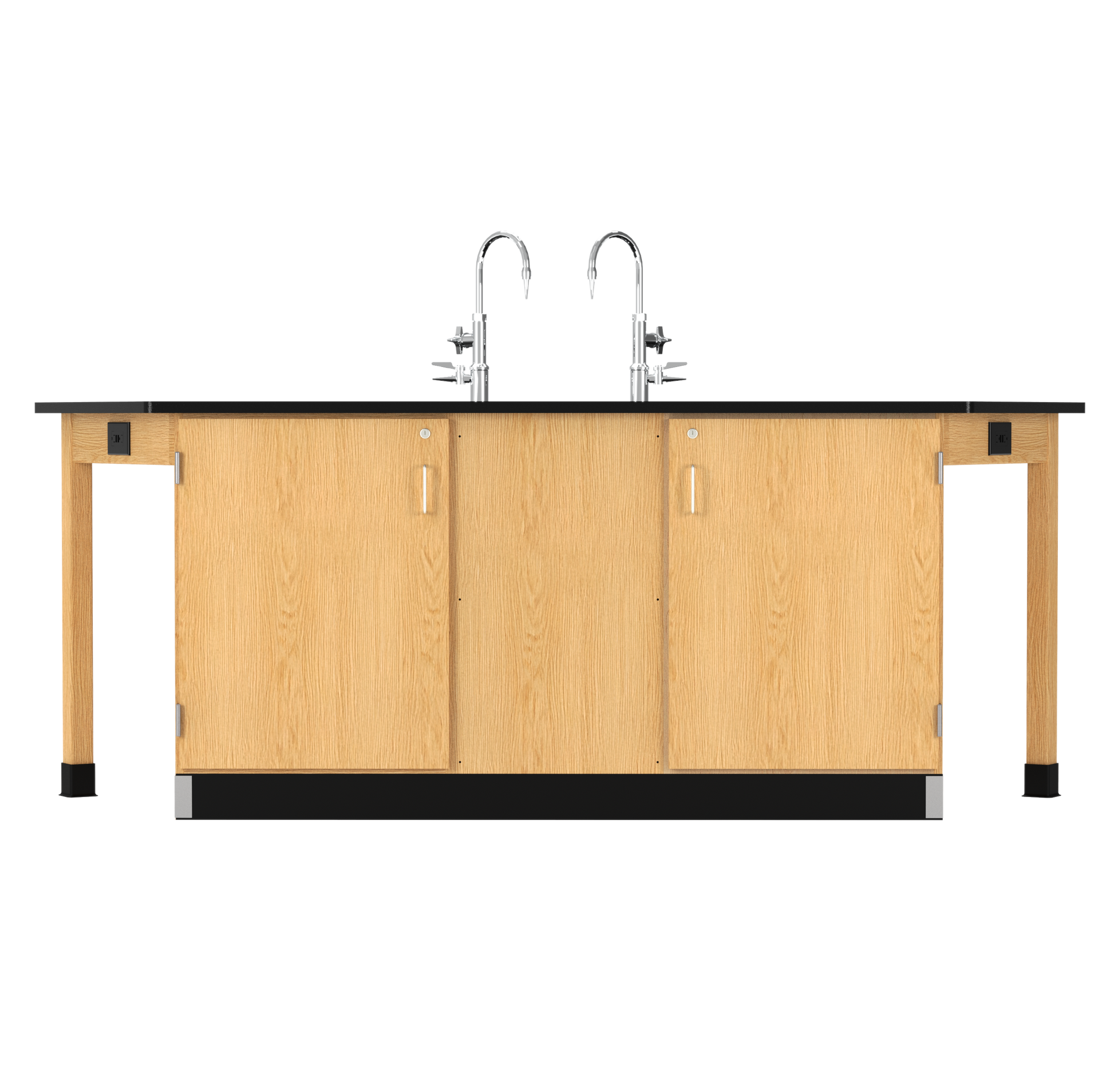 Need a way to keep students focused during labs? The Forward Vision™ Workstation gives four students a place to work together while staying engaged with the instructor. Everyone faces forward, so lessons stay clear and distractions are minimized. The flat, solid epoxy resin surface resists heat, chemicals and everyday wear, making it ideal for even the messiest of science experiments. Underneath, secure cabinets with adjustable shelves keep supplies organized and out of site. There's even space to slide stools out of the way when not in use. Plus, optional cold water and gas fixtures expand your teaching possibilities, whether you're teaching chemistry, biology or general science. Made from solid oak and finished with a chemical-resistant UV coating, it's designed to last year after year. With the Forward Vision™ Workstation, you get a workspace that supports your science curriculum and classroom flow.