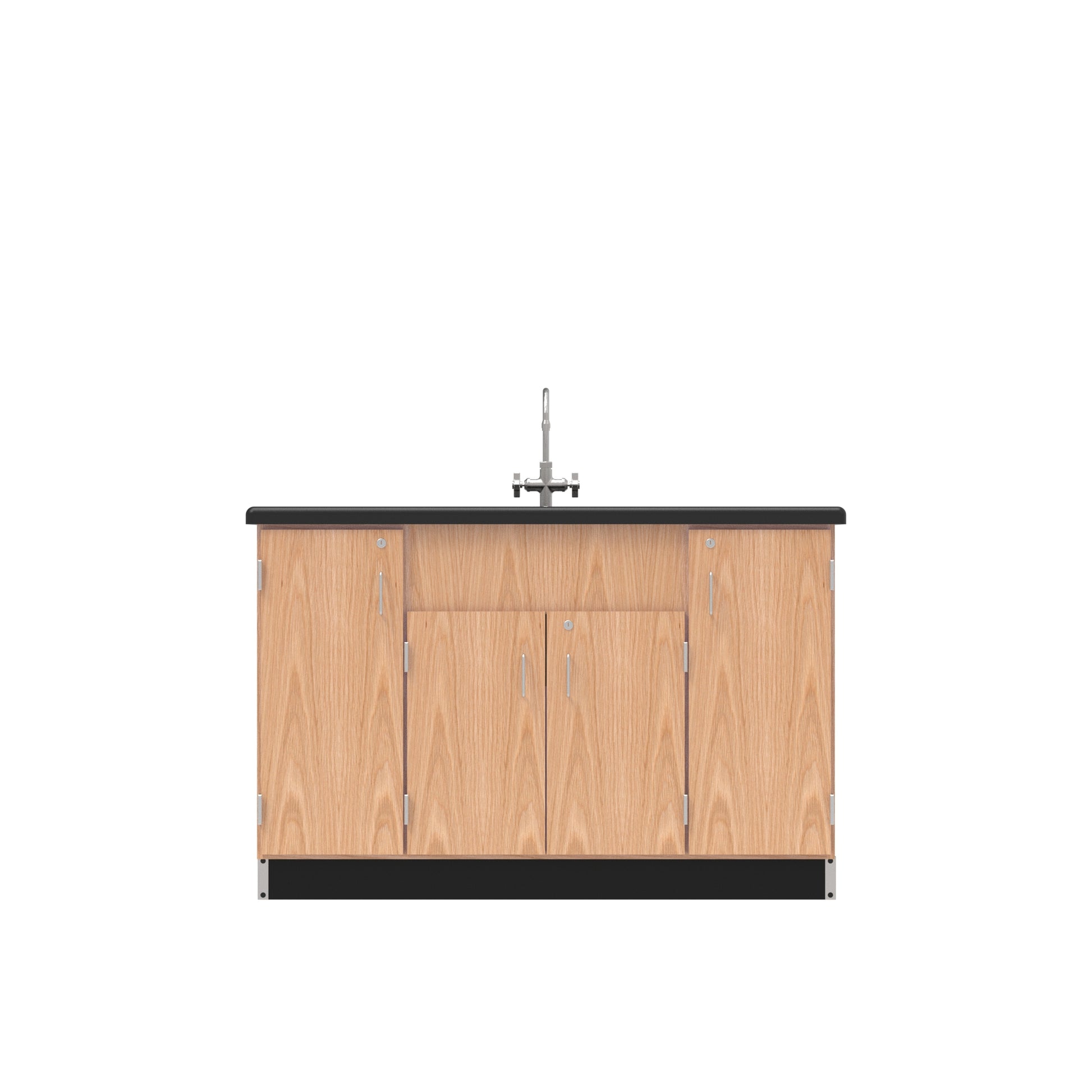 When science experiments wrap up, the Kinetic Clean-Up Sink helps you reset the lab quickly and get ready for what's next. The one-piece polyolefin top is easy to clean, resists chemicals and helps prevent glassware breakage. A grooved counter directs liquids into a larger center sink, and the built-in hot and cold water faucet makes rinsing simple. It's also tough enough to handle dry ice without cracking. Locking cabinets with adjustable shelves offer secure, flexible storage. The Kinetic Clean-Up Sink is built to support the flow of your classroom and is ready for whatever your next experiment throws at it.
