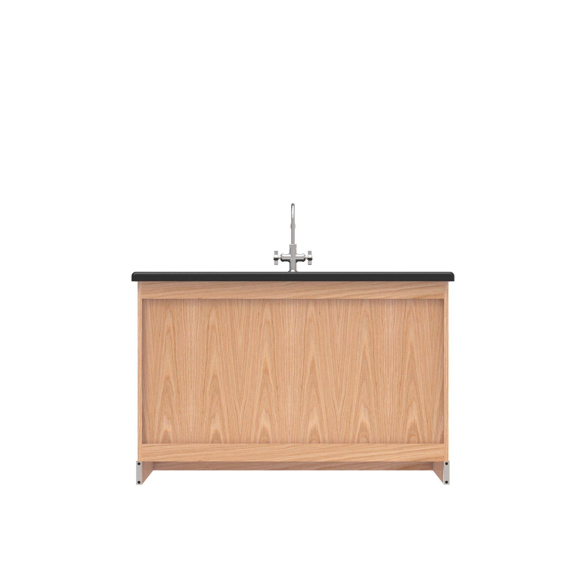 Base | Solid oak hardwood apron and veneers; Unfinished back panel with plumbing cut-out |