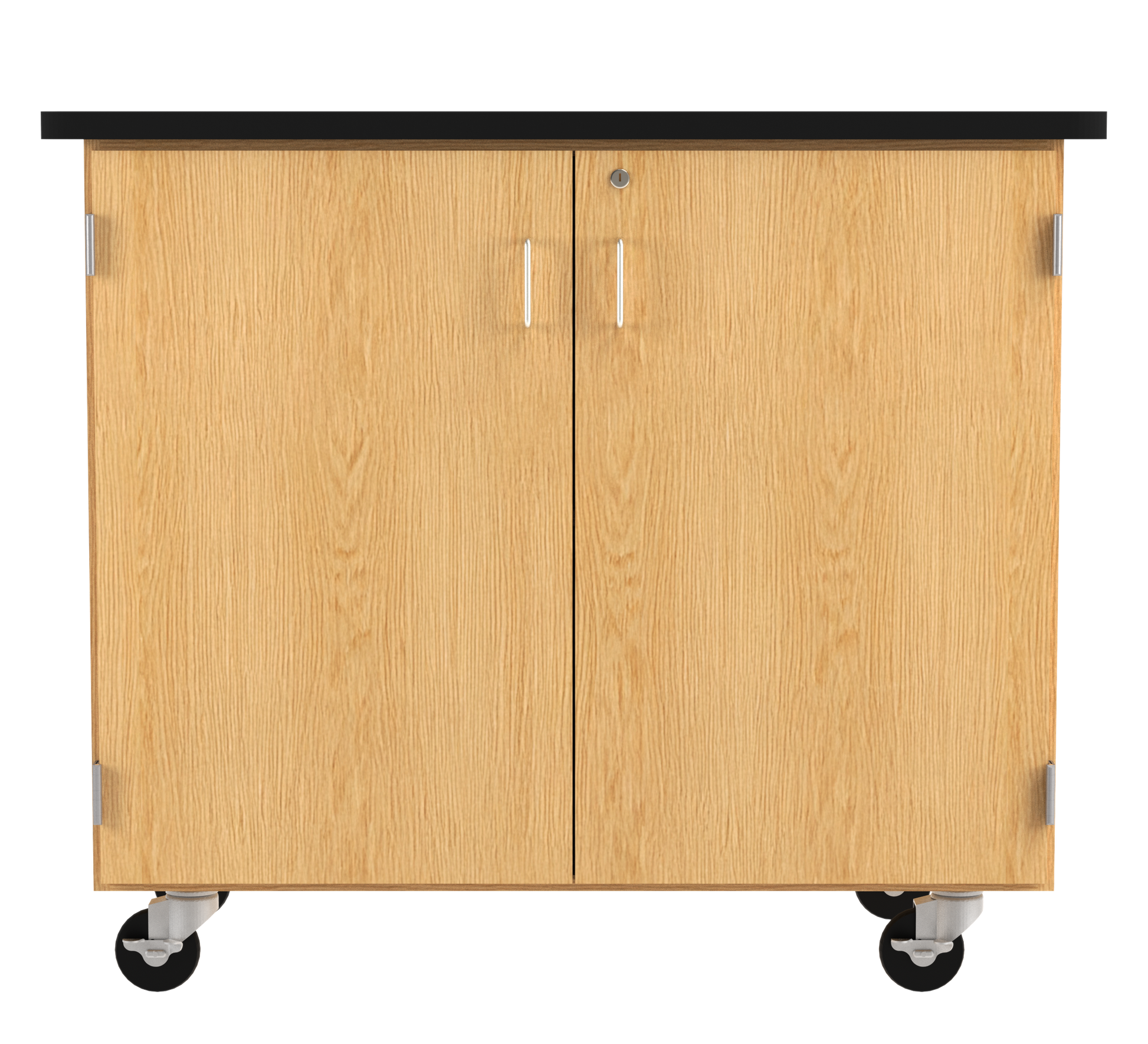 The PerpetuLab Microscope Storage Cabinet is a smart, secure solution for storing classroom microscopes while keeping your lab organized and functional. With space for up to 24 standard microscopes, this mobile cabinet helps protect valuable equipment and makes it easy to transport between stations or classrooms. Lockable doors on both sides provided added security, and removable dividers inside create individual spaces for each microscope – helping prevent damage and keeping everything in order. The black laminate top doubles as a convenient worksurface, giving you extra space for preparing lessons, setting up materials or doing light tasks. Built from solid oak and oak veneers with an earth-friendly UV finish, this microscope storage cabinet is designed to hold up to anything your lab or students throw its way.