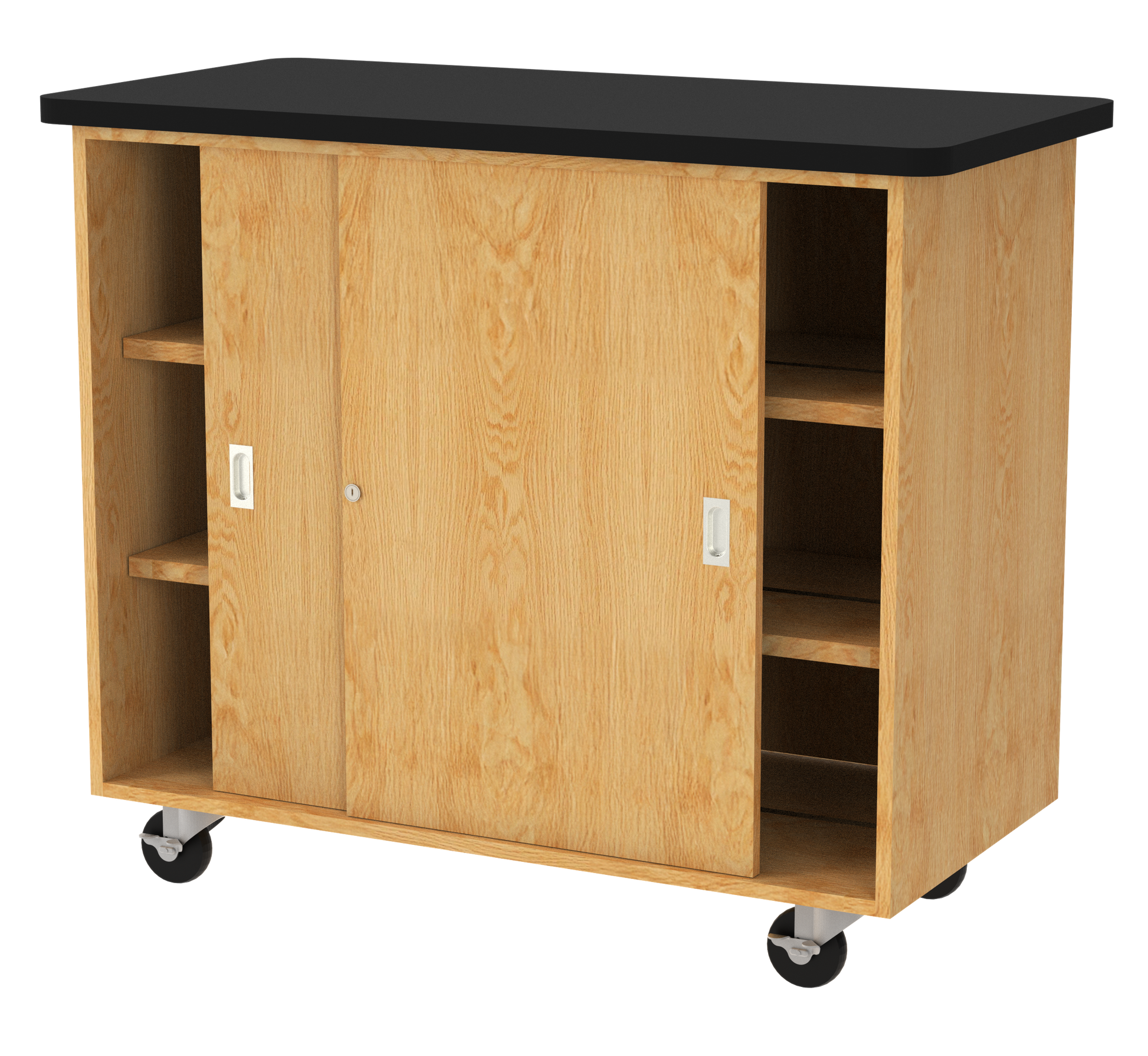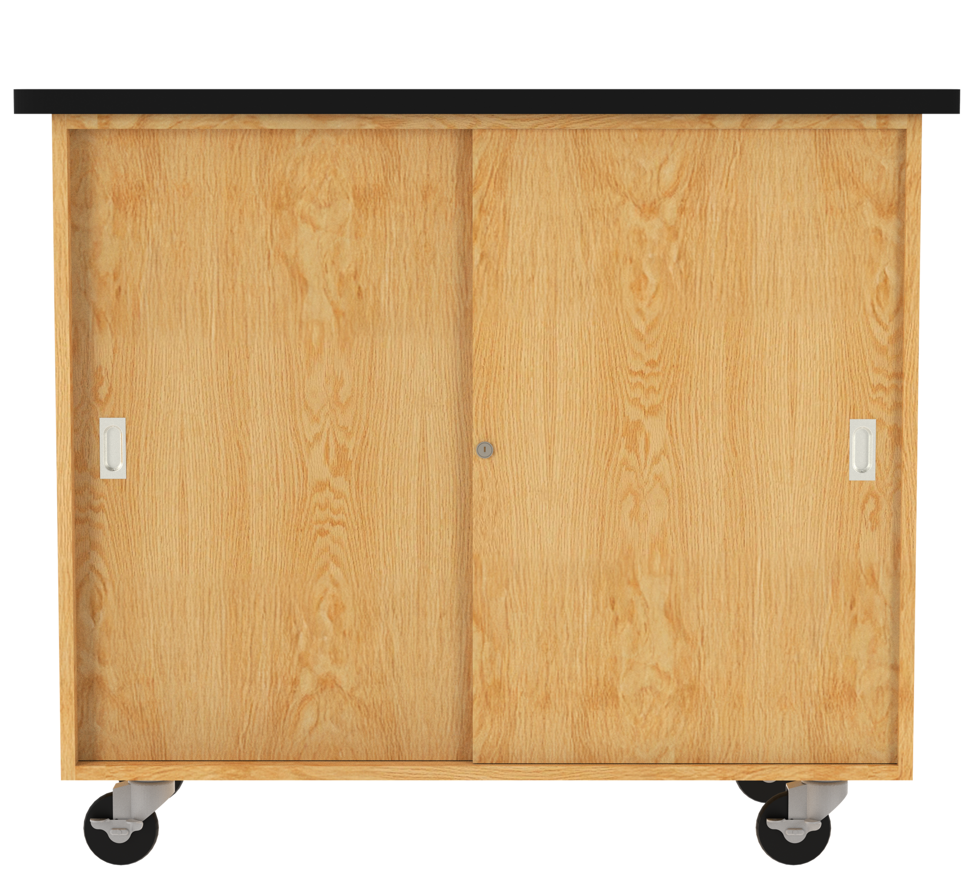 Compartments | Locking front and back sliding doors with aluminum glides; 4 adjustable shelves; unit is double-sided and includes two sets of sliding doors |